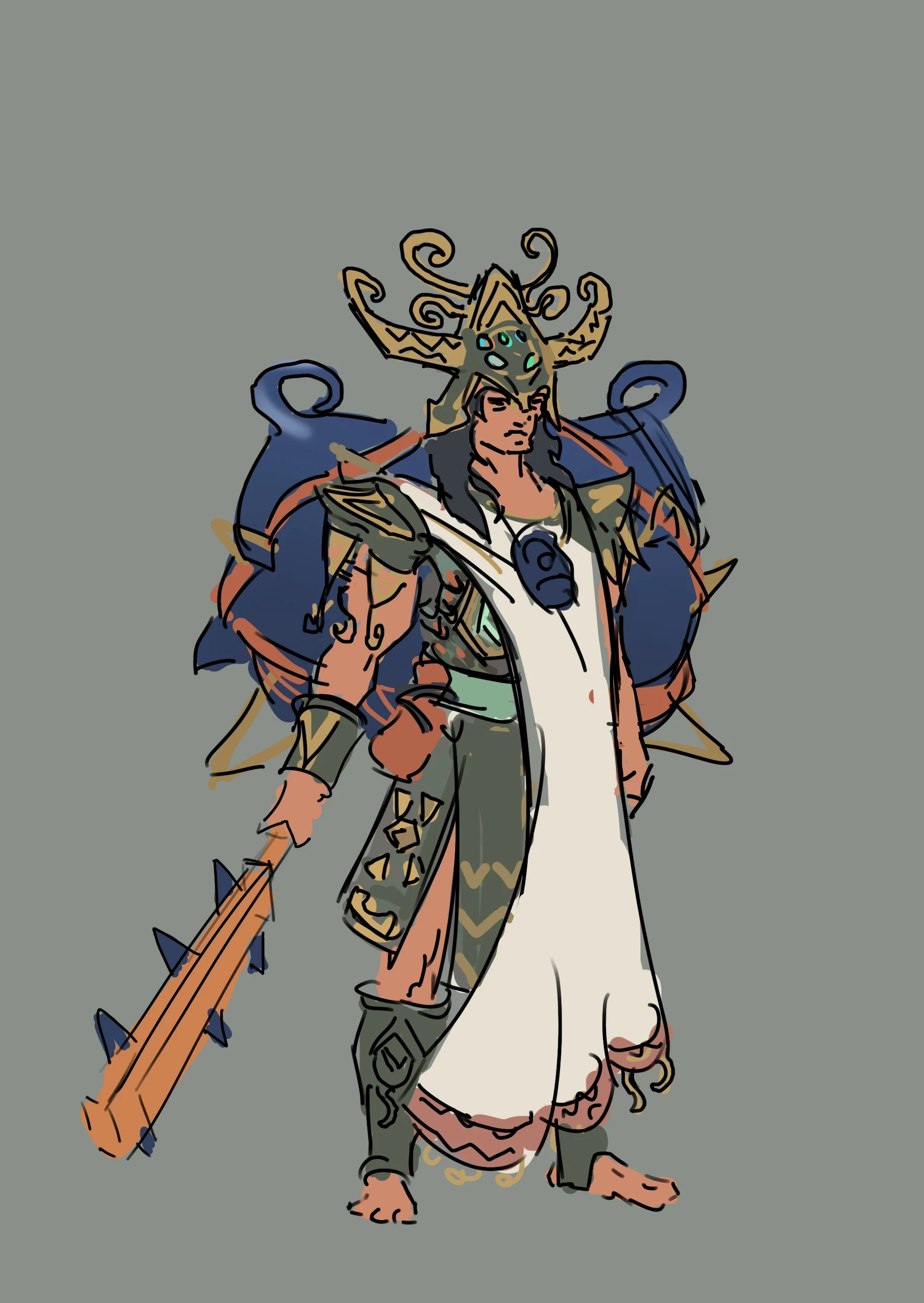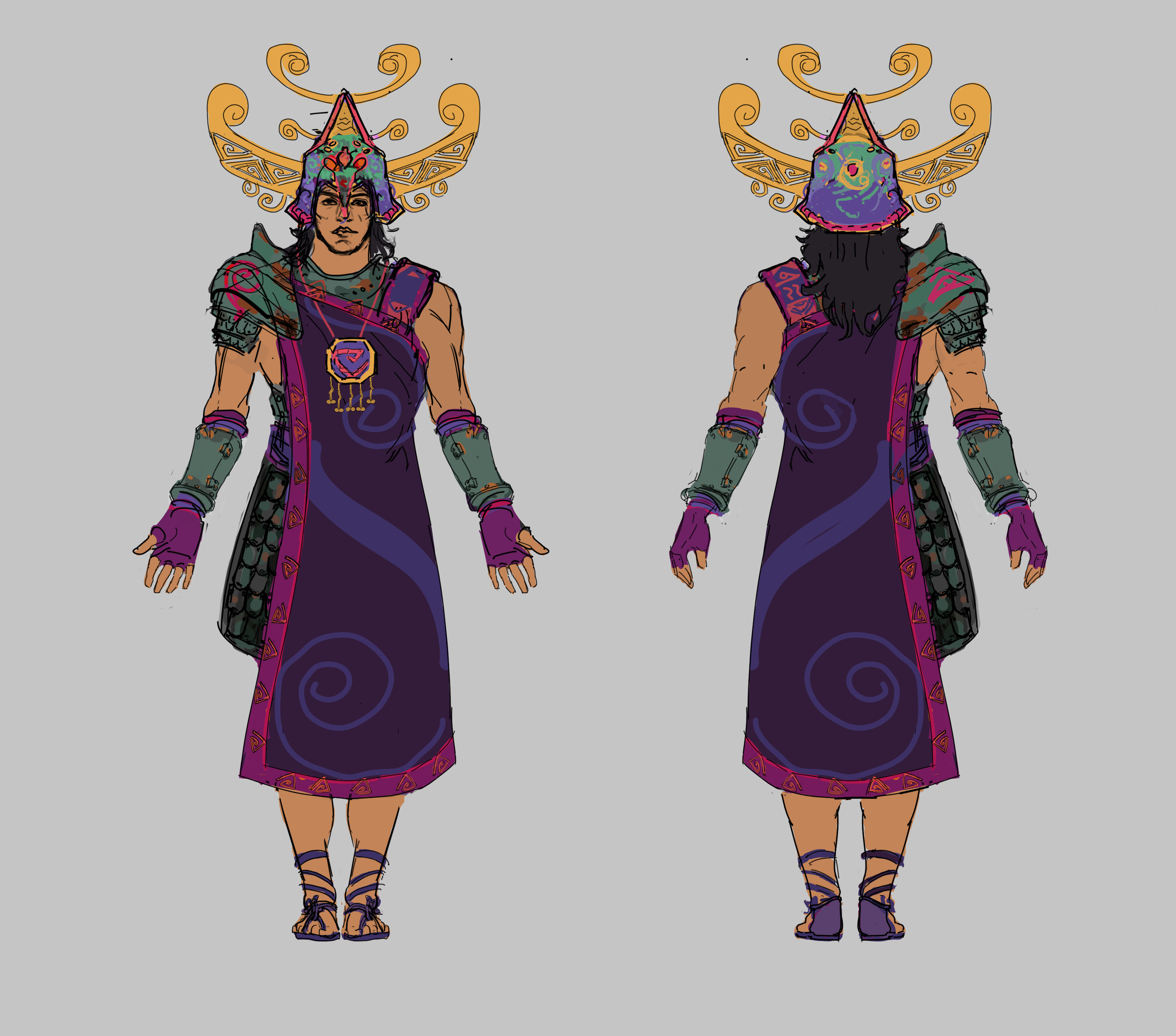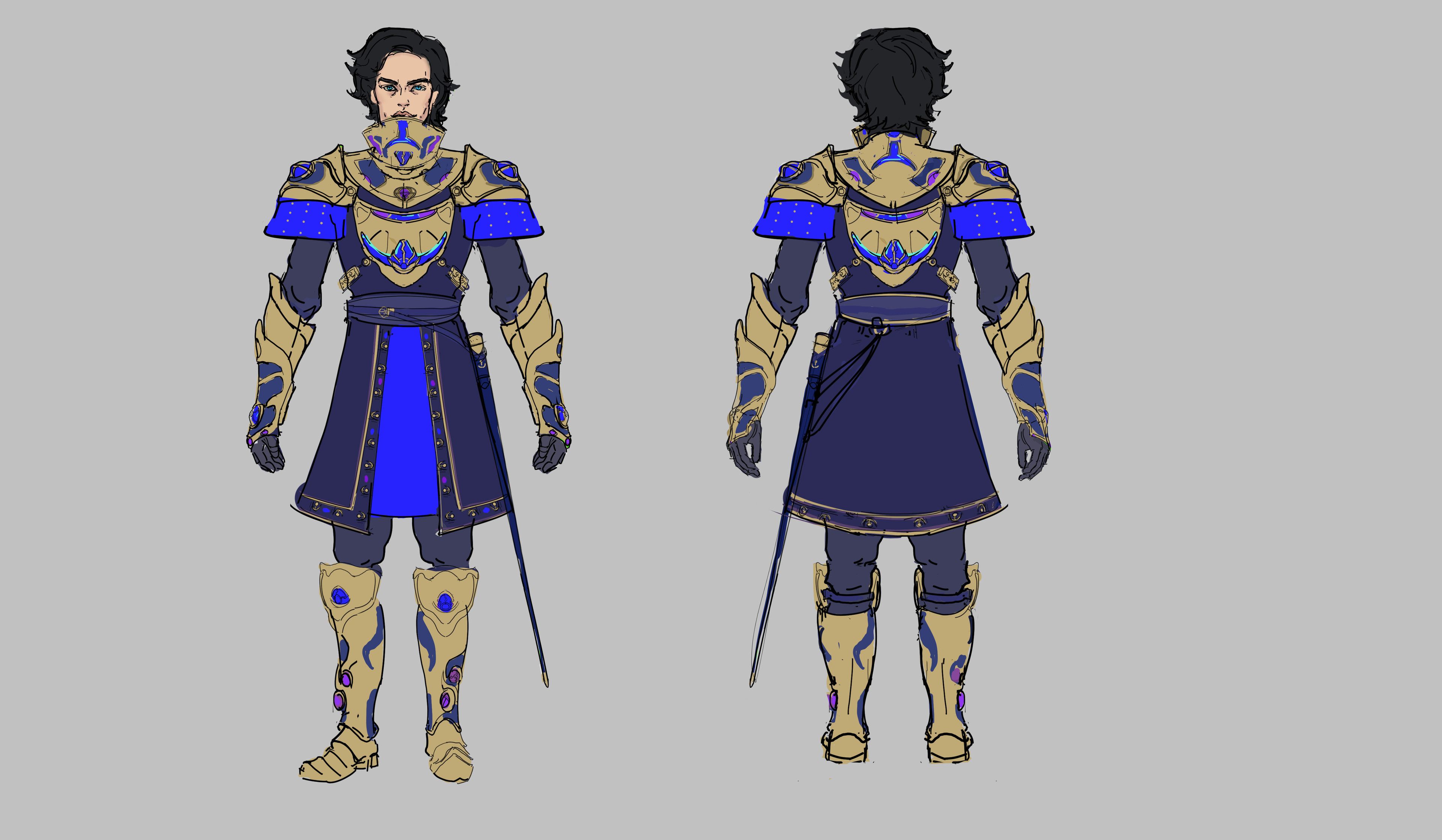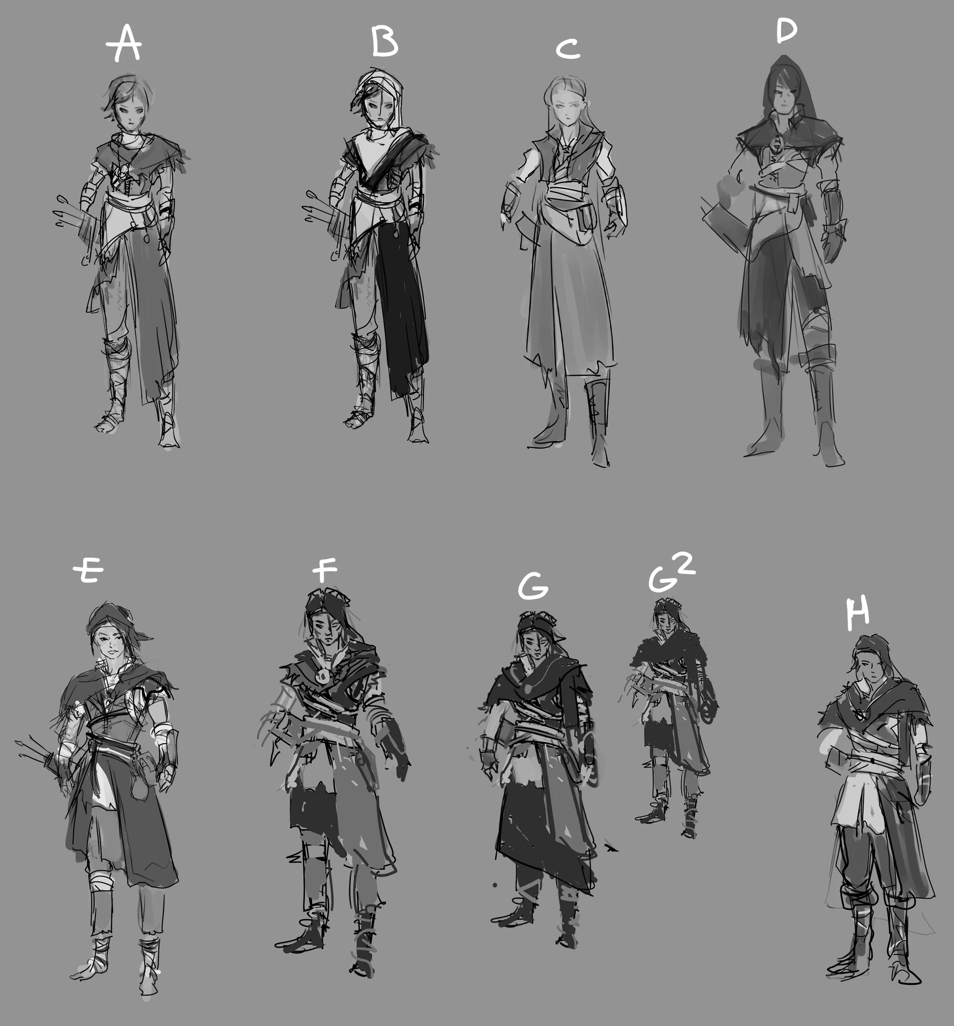 The game is a third person multiplayer pvp game, similar to a hero shooter but medieval/magic setting. The character models will be the same base type for each character so I've focused on making each character unique through clothing and silhouette.
